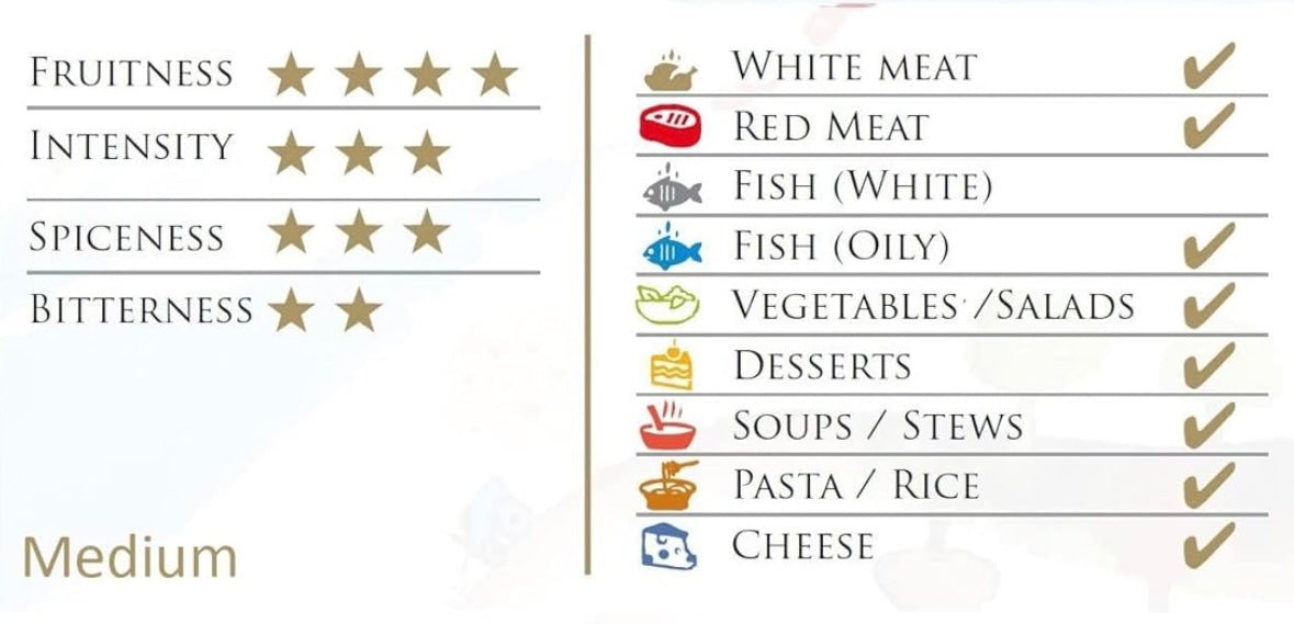 - Ausgezeichnet mit dem Gran Prestige Gold bei Terraolivo in Israel, anerkannt als eines der 20 besten Öle der Welt.