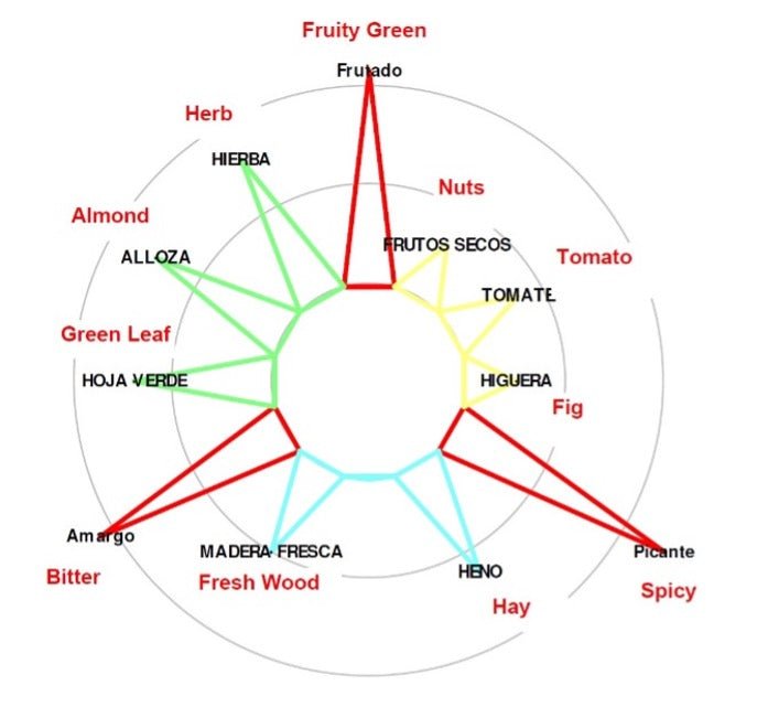 Discover the unique taste of Señorios de Relleu Organic Coupage, an organic blend of extra virgin olive oil, composed of five indigenous and arbequina varieties. This medium fruity olive oil is characterized by a light bitterness and a medium spicy character.